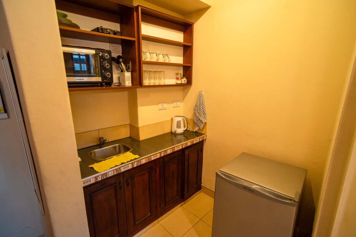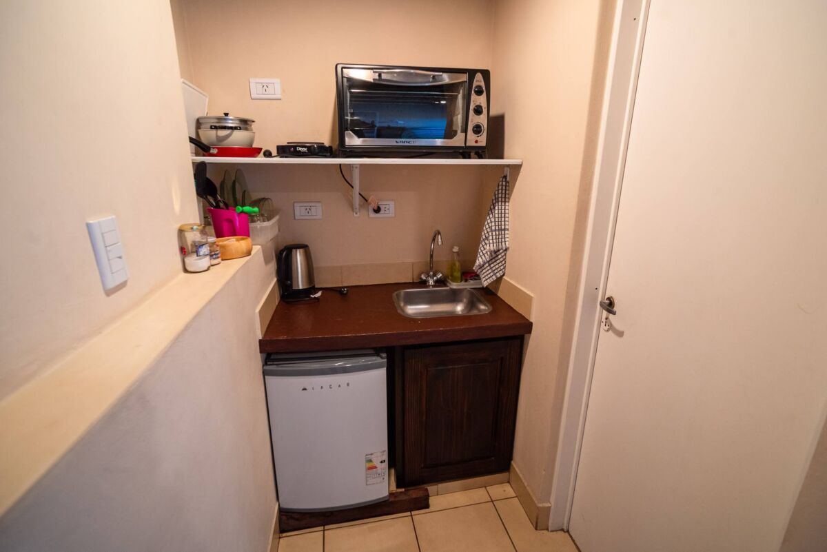 El Apart cuenta con un entrepiso donde se pueden alojar hasta 3 huéspedes en 1 cama King y una Twin o 3 camas Twin. En planta baja 1 cama Twin.